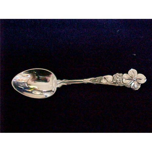 </font></strong>A 4 3/16-inch floral decorated demitasse spoon. The handle is decorated in detail front and back. At the top is a flower with a bee sitting in the flower on the back of the spoon. The remainder of the handle is formed of intertwined clover flowers and cloverleaves. On the back near the base is a ?sterling? stamp.</font>
