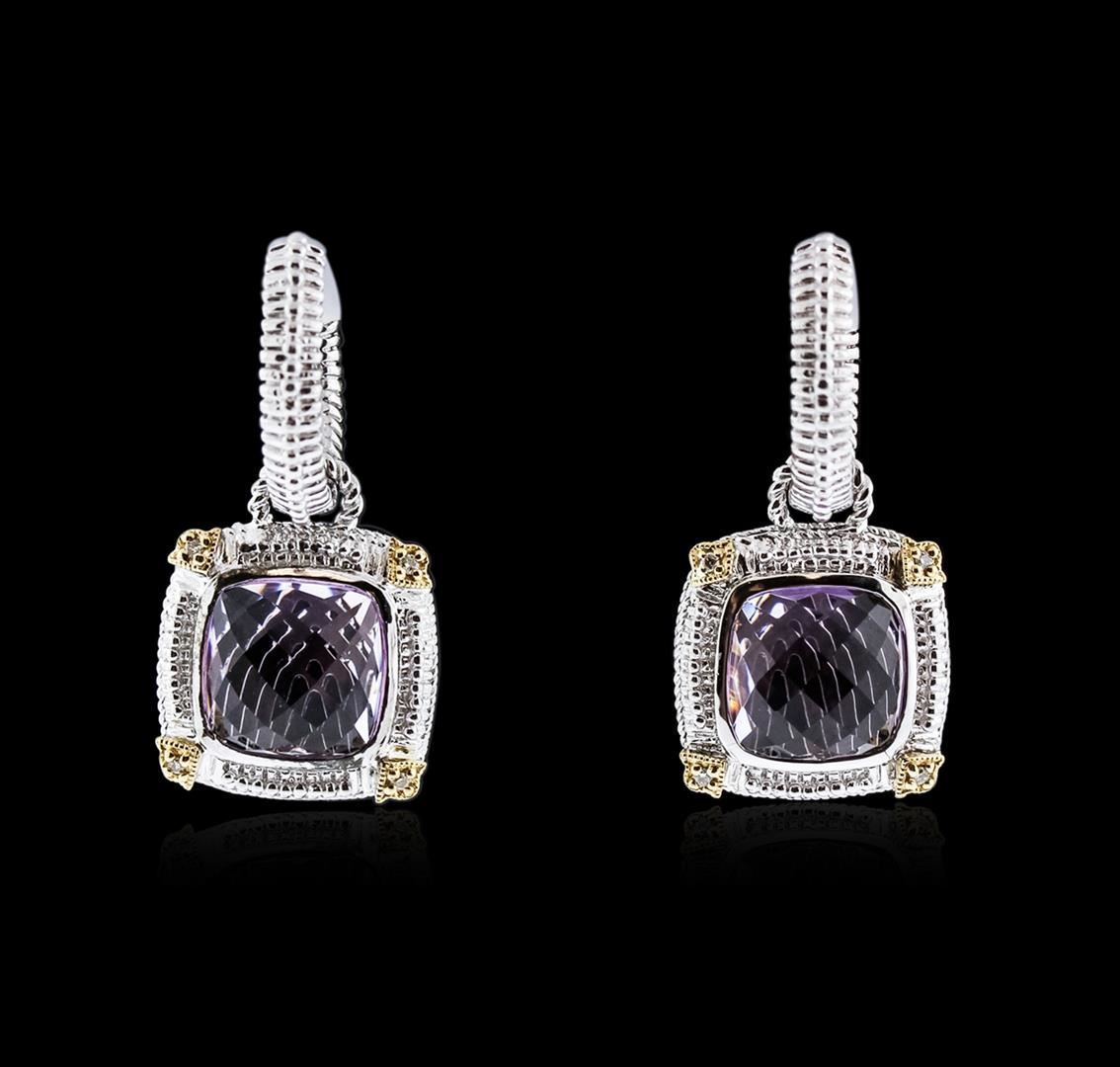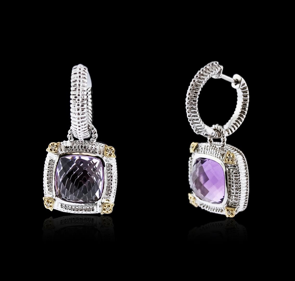 One pair of earrings featuring: Sterling silver weighing 12.10 grams containing amethysts with a total weight of 6.30ct and diamonds with a total weight of 0.03ct.
