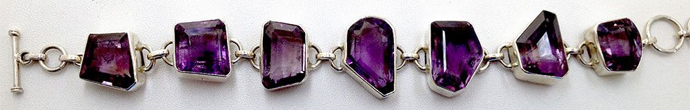 Sterling Silver 43.97 Approx grams including, Multi Shape Amethyst (like stones), toggle Hook 8inch