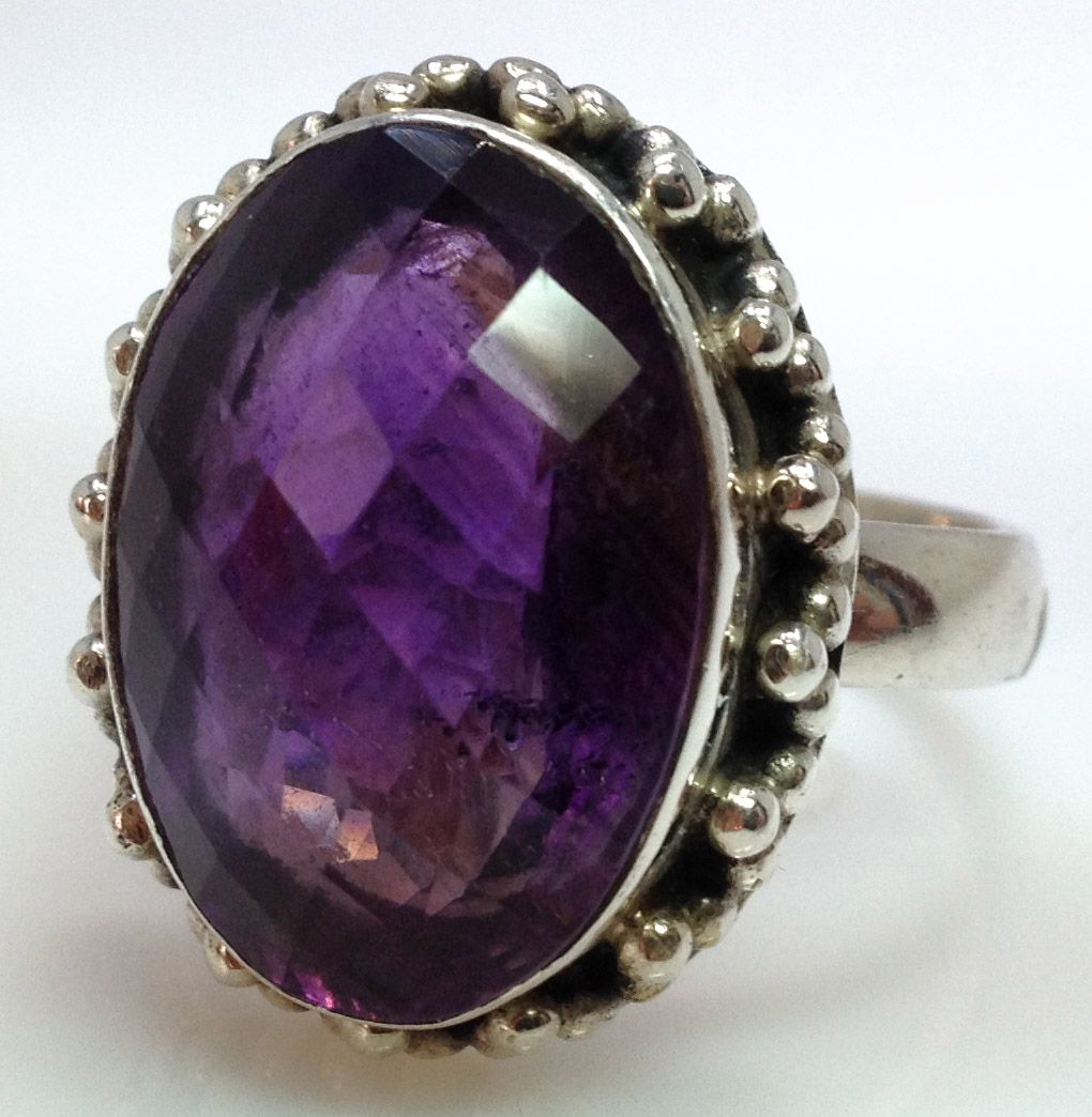 Vintage Style Ring, Oval Amethyst w/ Handmade Detail Work around stone 8.59 grams including gem, size 5.5