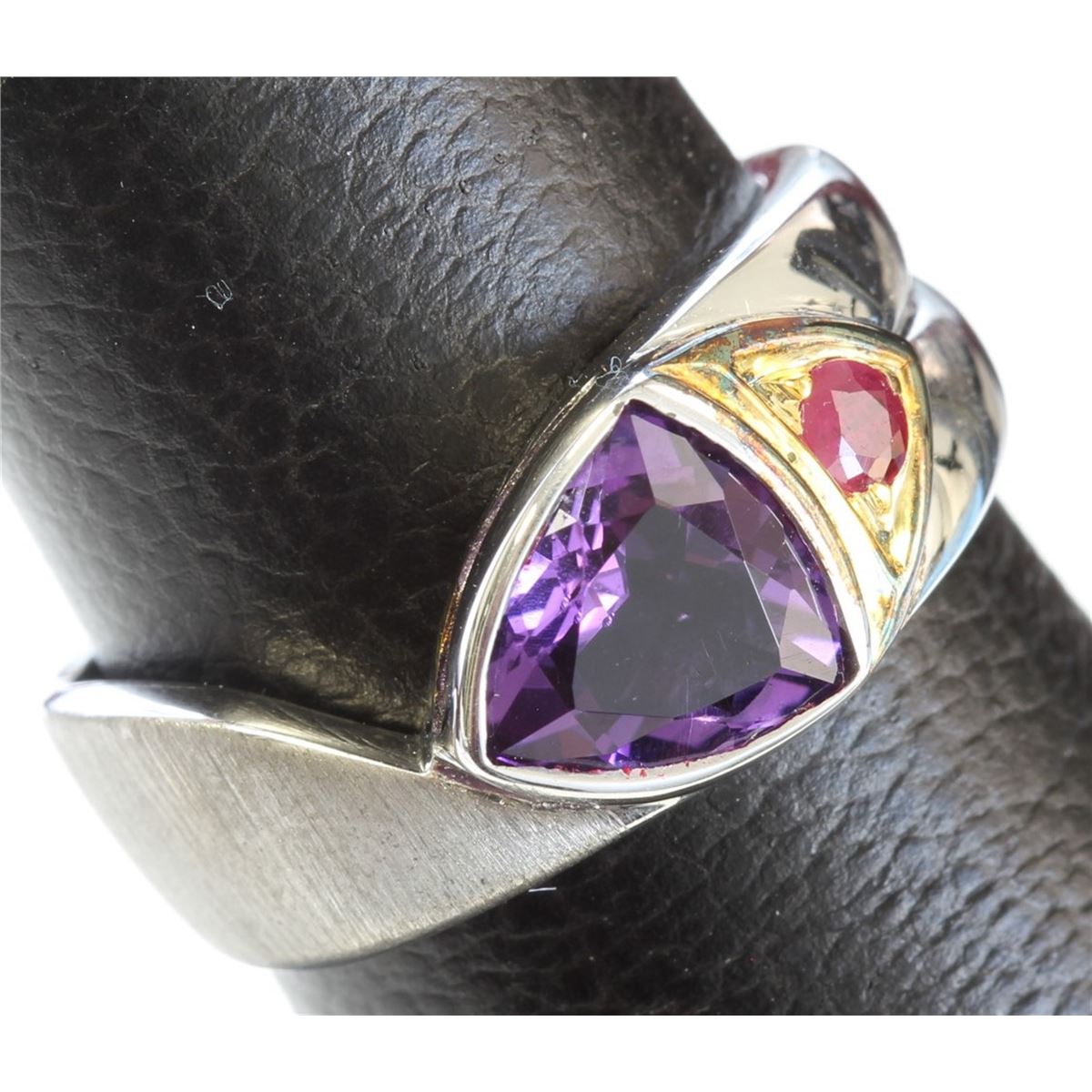 Sterling Silver .925 Amethyst w/ Ruby Ring Two Toned 4.88gram