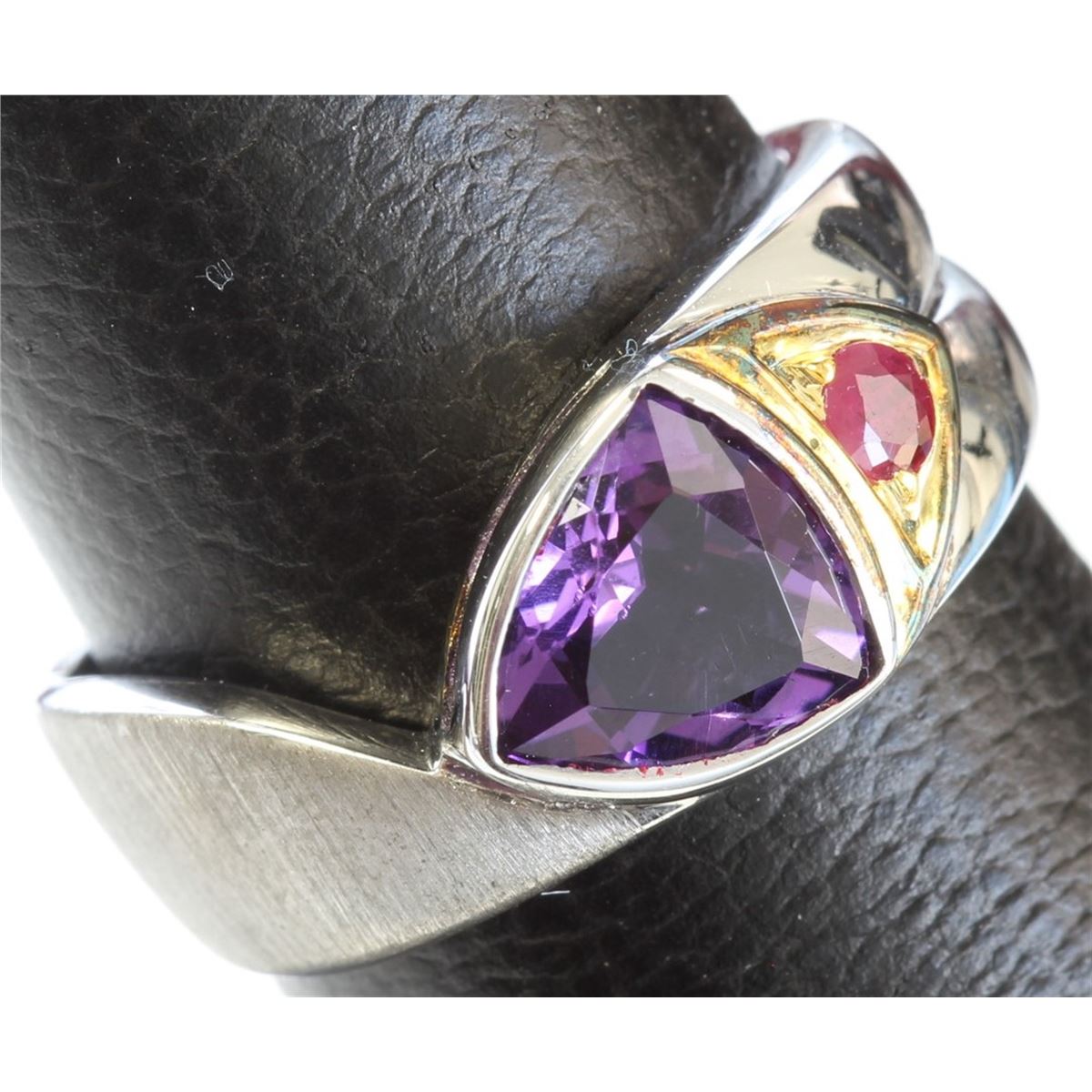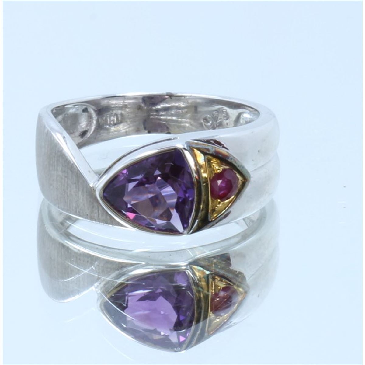 Sterling Silver .925 Amethyst w/ Ruby Ring Two Toned