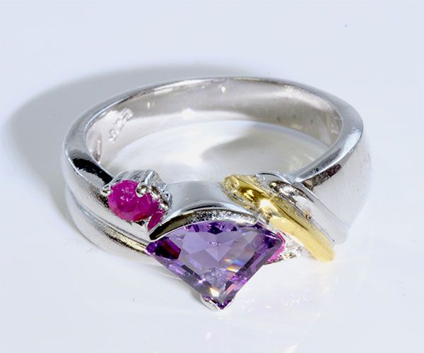 Sterling Silver .925 Amethyst w/ Ruby Ring Two Toned