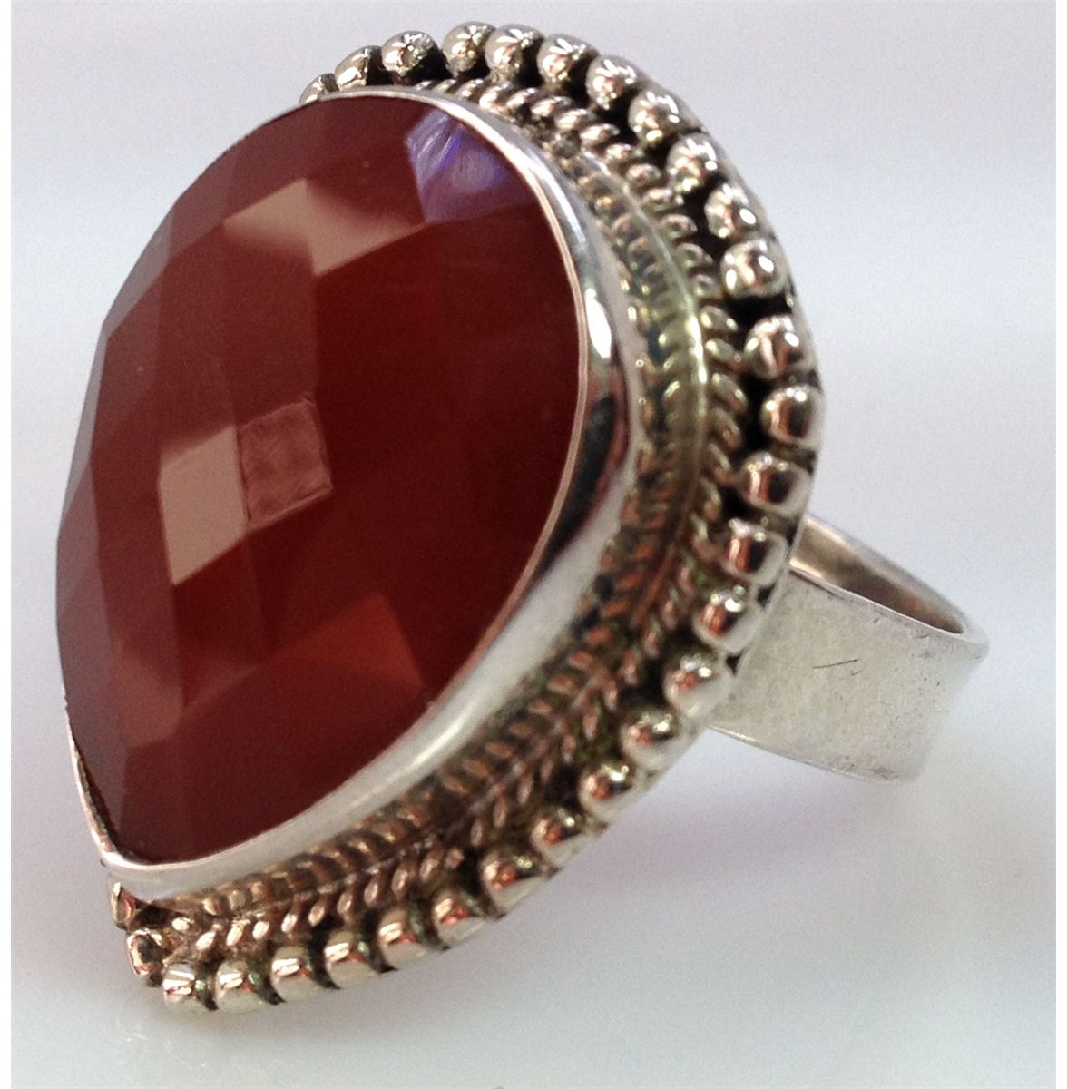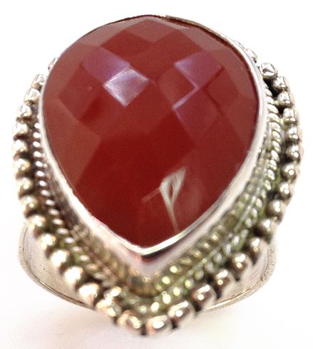 Vintage Style Ring, Pear Shape Semi Facet Carnelian w/ Handmade Detailed Work around stone 9.47 grams including gem, size 8.75
