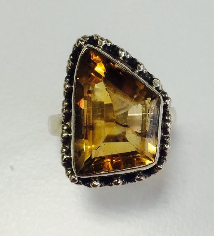 Sterling Silver .925 Citrine Ring 9.08g RS9.5