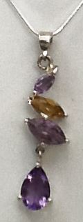 Sterling Silver .925 Citrine and Amethyst Pendant