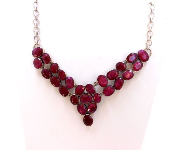 Sterling Silver .925 Corundum Ruby Necklace ctw