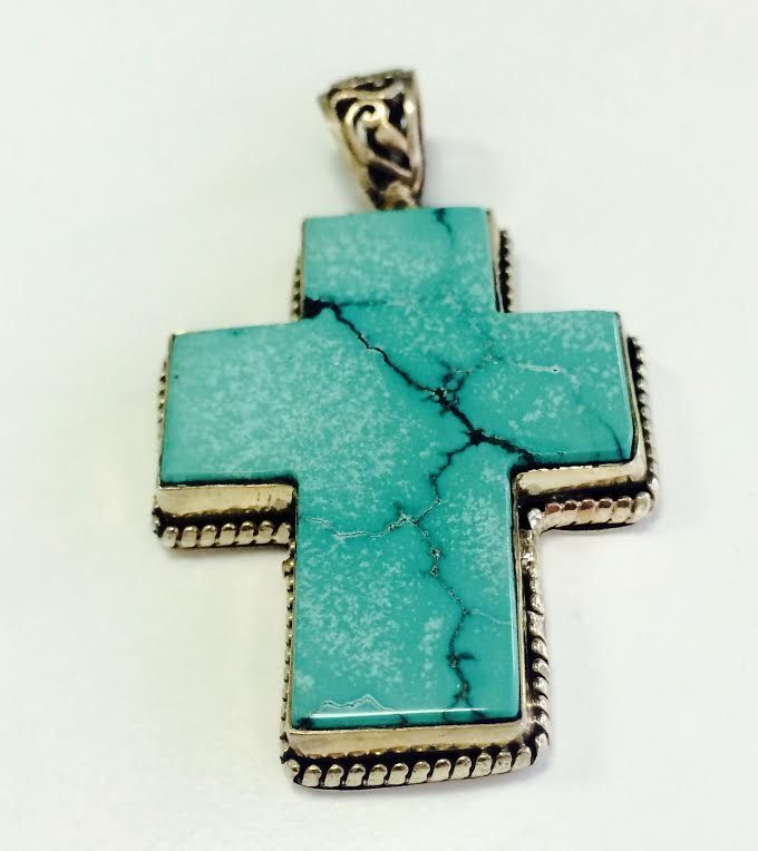 Sterling Silver .925 Cross Design Turquoise 22.02g 35x55mm