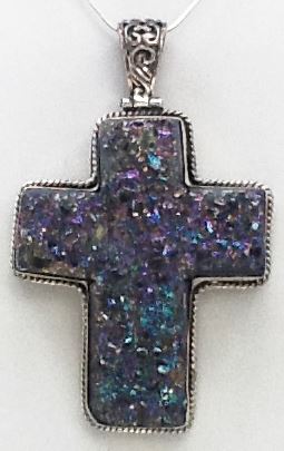 Sterling Silver .925 Druzy Cross Pendant, 45.0gr