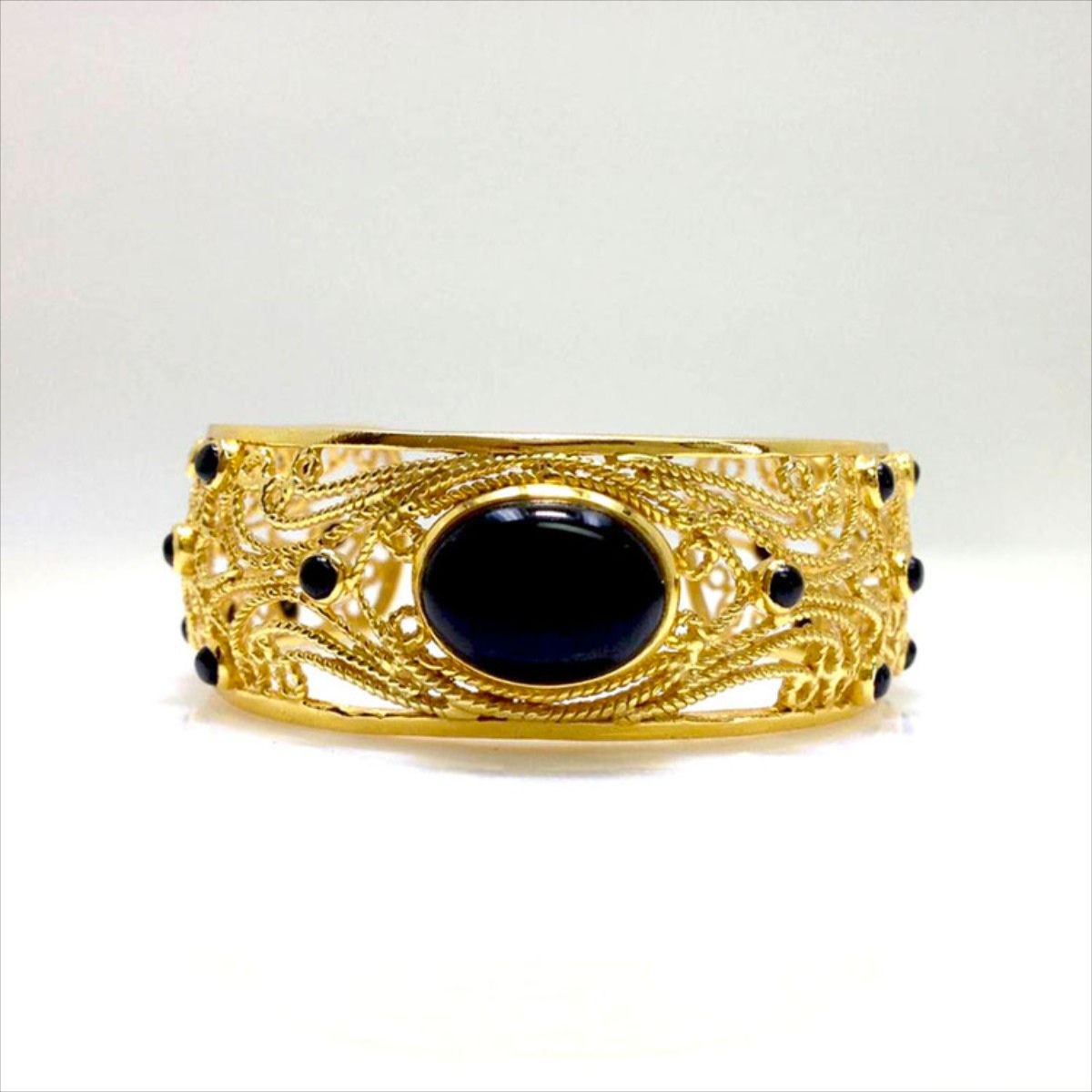 Vintage Handmade Gold Plated Elegant Evening Bangle with Onyx 26.40 approx grams including gems, approx will fit up to 8 inch wrist