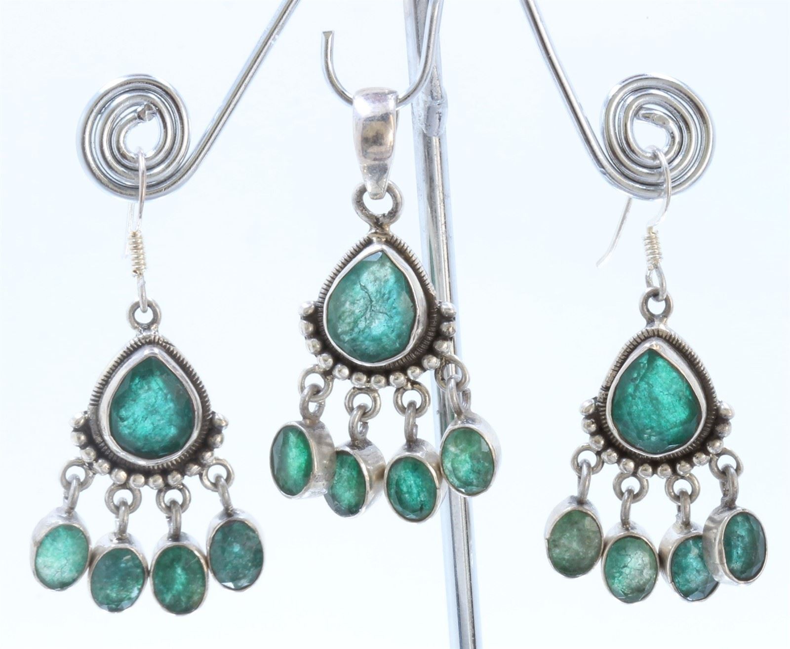 Sterling Silver .925 Emerald Beryl Earring 17.40g #SL047