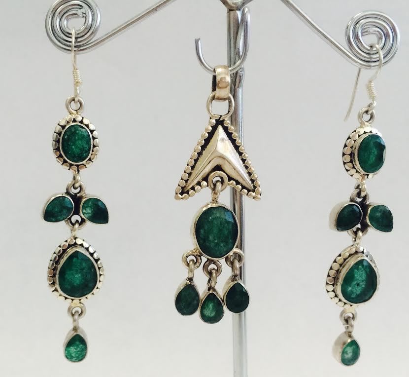 Sterling Silver .925 Emerald Beryl Earring 17.44g