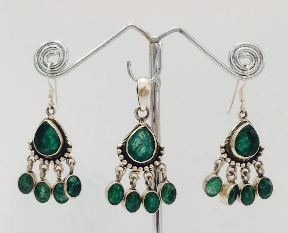Sterling Silver .925 Emerald Beryl Earring 19.26g