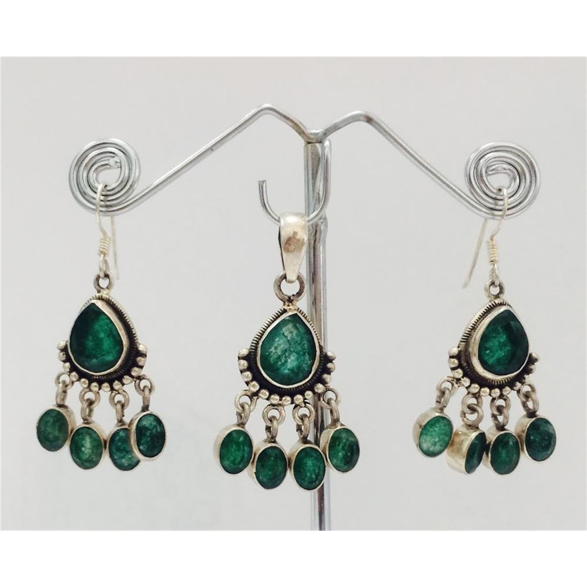 Sterling Silver .925 Emerald Beryl Earring and Pendant set