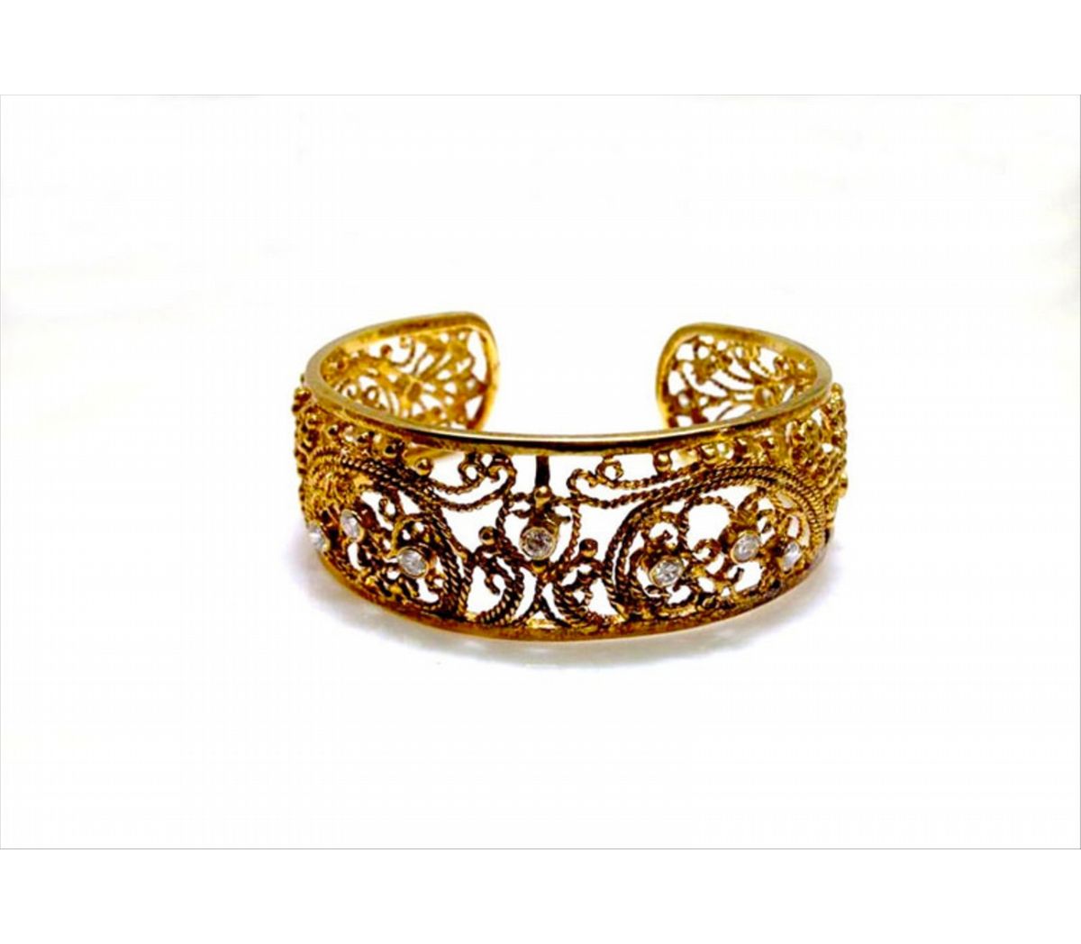 Sterling Silver .925 Filigree CZ Cuff Bangle