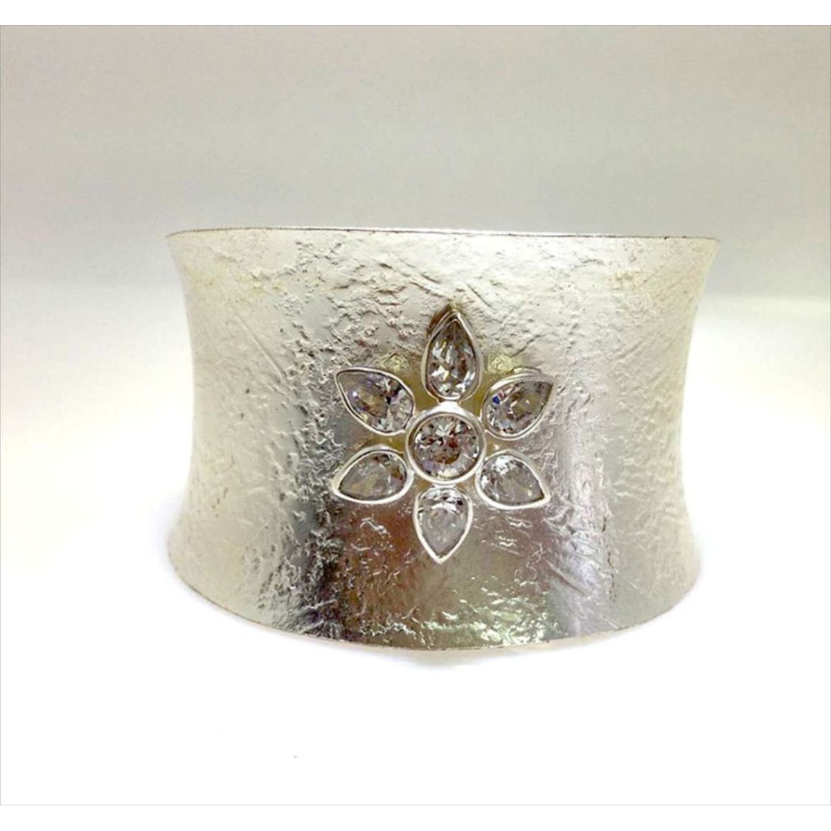 Vintage Handmade Flower Design w/ Cubic Zirconia 36.67 approx grams including gems, open back should fit any wrist