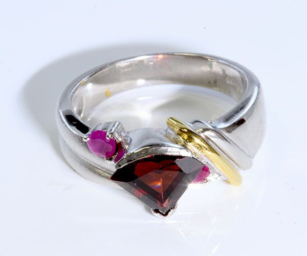 Sterling Silver .925 Garnet W/ Ruby Ring Two Toned