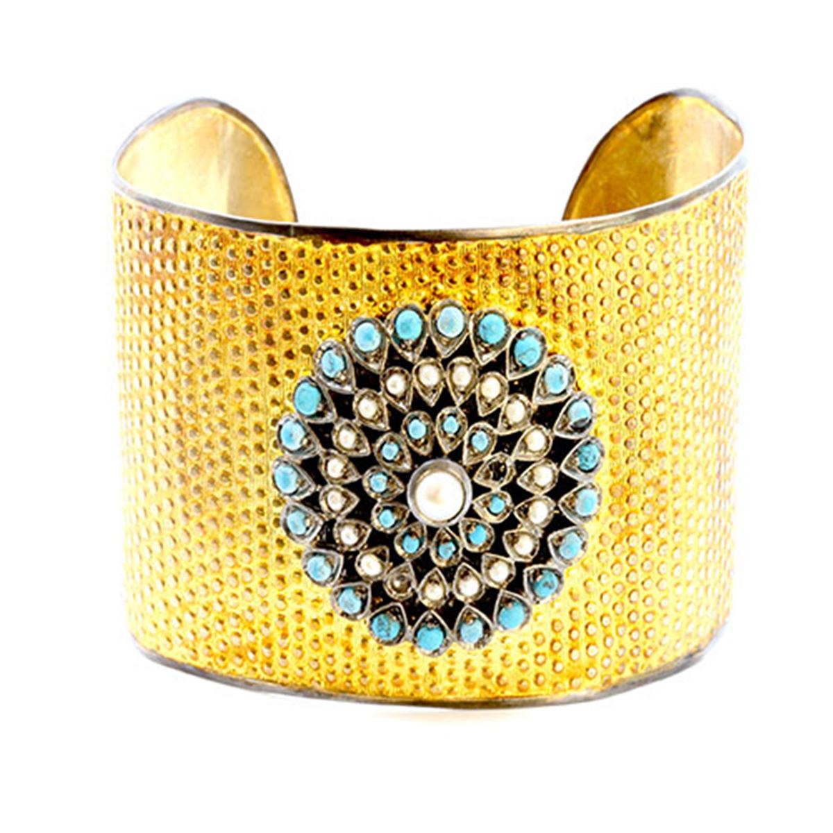 Sterling Silver .925 Gold Tone with Turquoise Cuff Bangle 20.95 gram