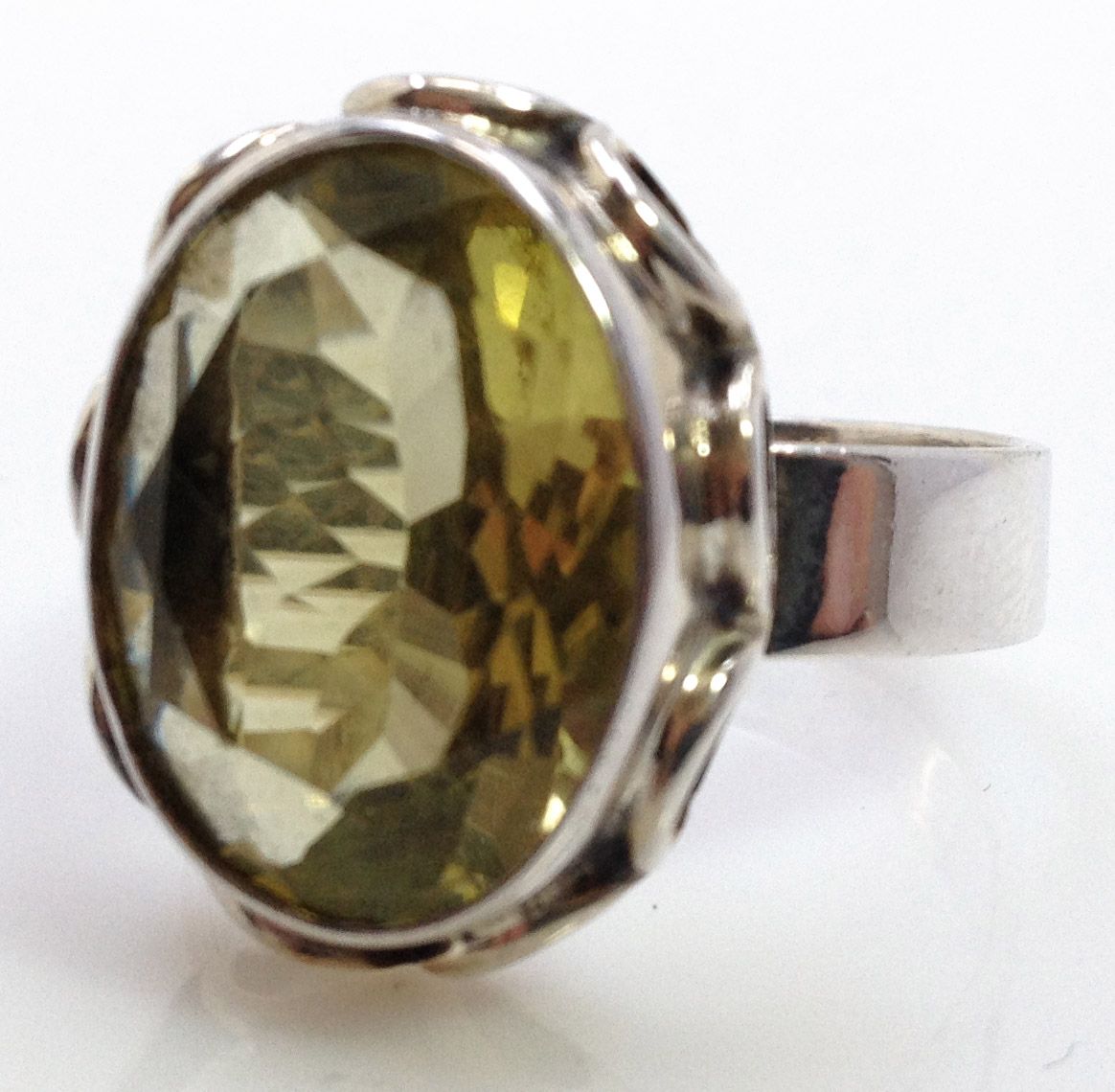 Vintage Style Ring, Oval Lemon Quartz w/ Handmade Detailed work around stone 6.79 grams including stone, size 10