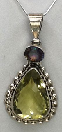 Sterling Silver 19.48 Approx grams including gems, Big Pear shape Lemon Quartz w/ Mystic Topaz, chain not included can be purchased for an additional $15