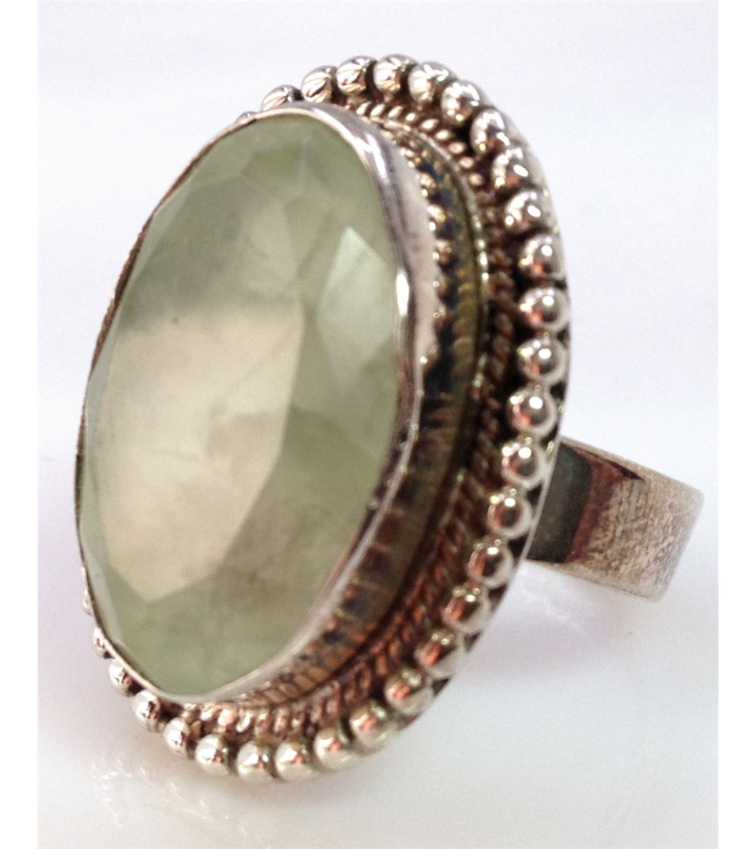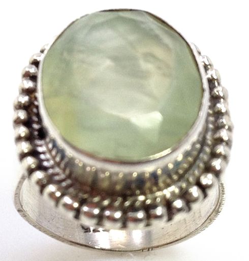 Vintage Style Ring, Oval Lime Quartz w/ Handmade Detail Work around stone 9.50 grams including gem, size 4
