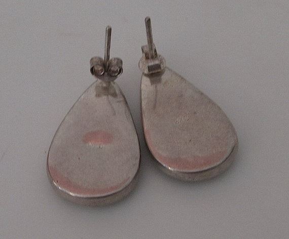 For your consideration is a pair of these gorgeous vintage Mexican Taxco sterling silver and abalone shell inlay earrings in wonderful vintage condition. These beauties are a pierced type and feature and feature a mosaic inlay design. The earrings measure 1" by 1/2" wide at the widest point. Both pieces are stamped 925 and have been tested for silver content. Wonderful addition to any jewelry collection!
