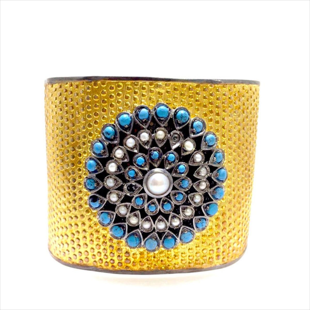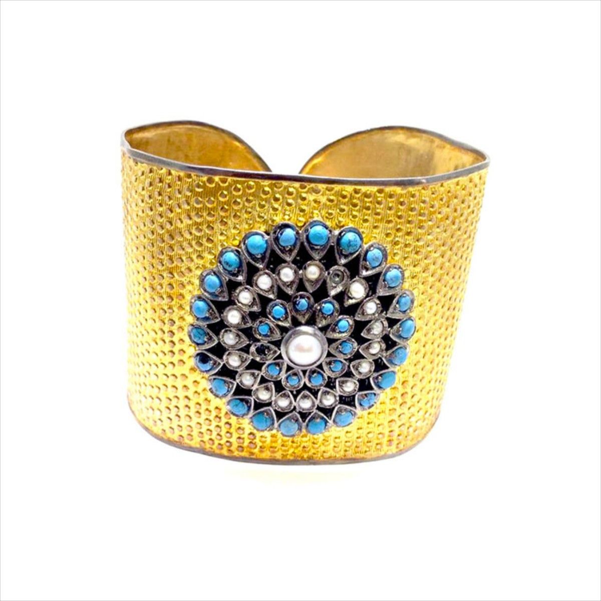 Vintage Handmade Beautiful Peacock Design with Pearls and Blue Turquoise 51.03 approx grams including gems, Gold Plated