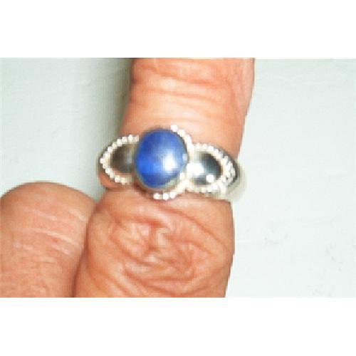 Todays auction brings to you a beautiful, Sterling Silver Ring with a Royal Blue Glass, Bezel-Set Stone. I'm not exactly sure of the size, but, I am guessing it is a size 5 1/2 or a size 6. The sterling silver band near the top has a heart on each side of the royal blue bezel set glass stone. Also engraved with 925. A very pretty decorated ring.