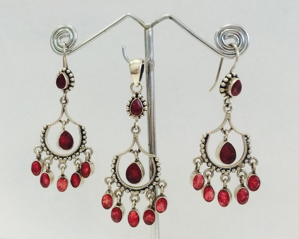 Sterling Silver .925 Ruby Corrundum Set (Ear & Pendant)