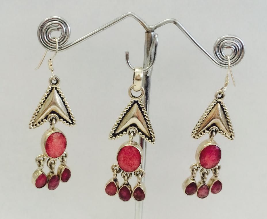 Sterling Silver .925 Ruby corrundum Arrow Set (Pendant & Earring 19.71g)