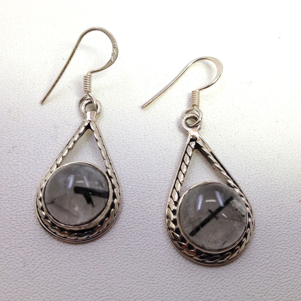 Sterling Silver 7.09 Approx grams including, Round Rutilated Quartz Hand Detailed Dangle Hook Back Earrings