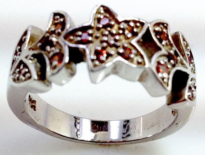 Sterling Silver Star Style Ring w/ Garnet color Gem Stones, 6.11 approx grams including gems, size 8