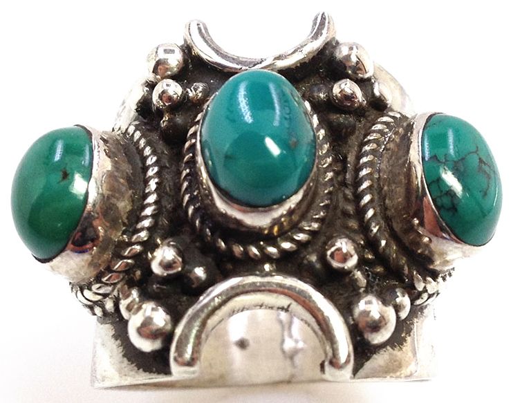 Vintage Style Ring Handmade Detailed work 3 Stone Turquoise 14.20 grams including stones, size 7.75