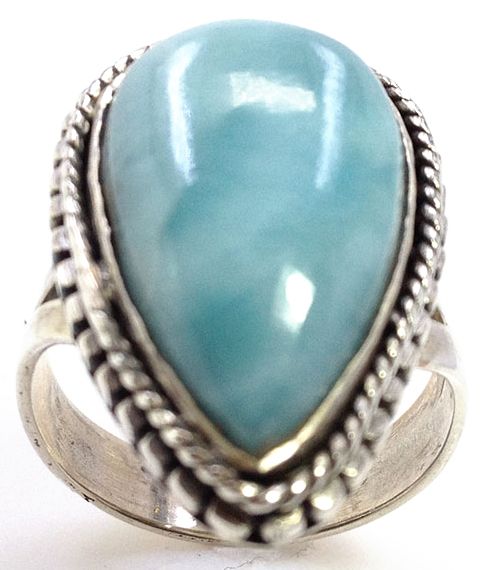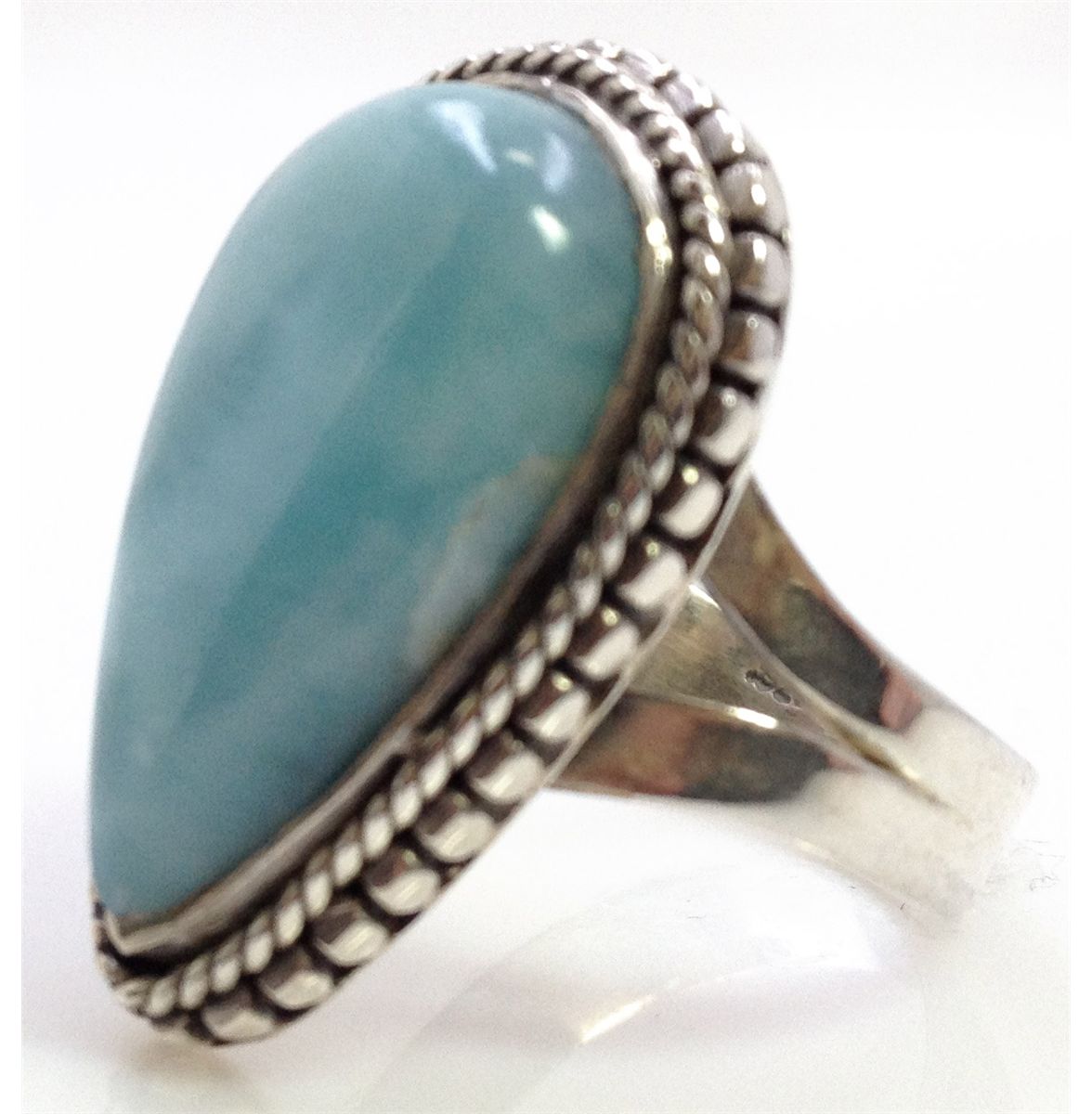 Vintage Style Ring, Pear Shape Turquoise color Agate w/ Handmade Detailed Work around stone 9.10 grams including gem, size 8.75