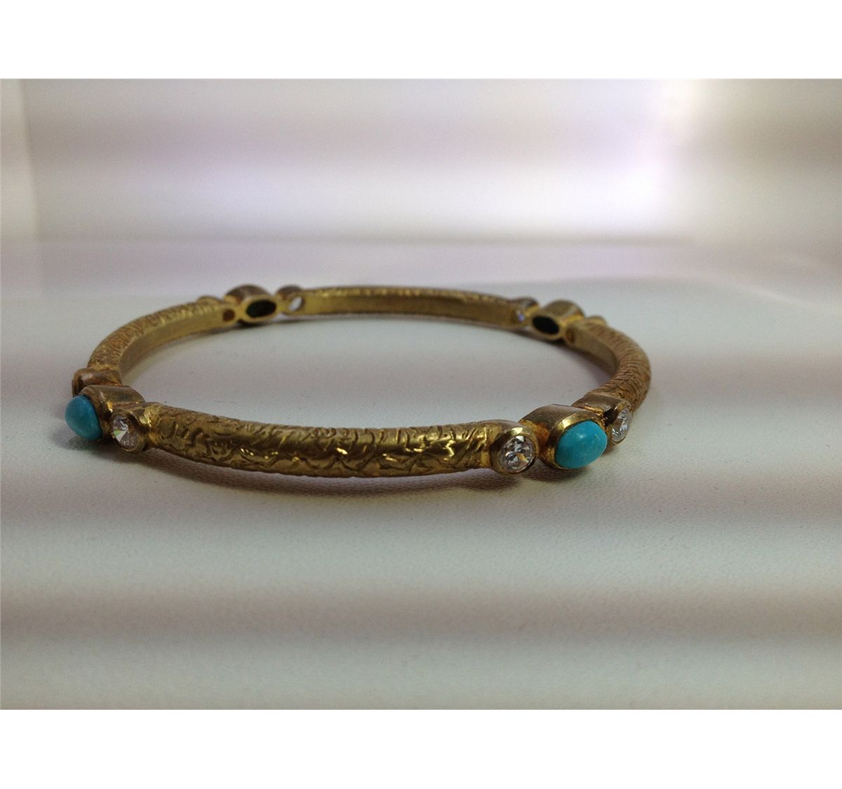 Sterling Silver .925 Turquoise w/ CZ Gold tone Bangle