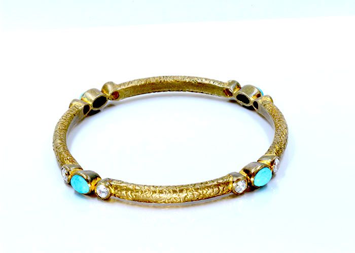 Sterling Silver .925 Turquoise w/ CZ Gold tone Bangle