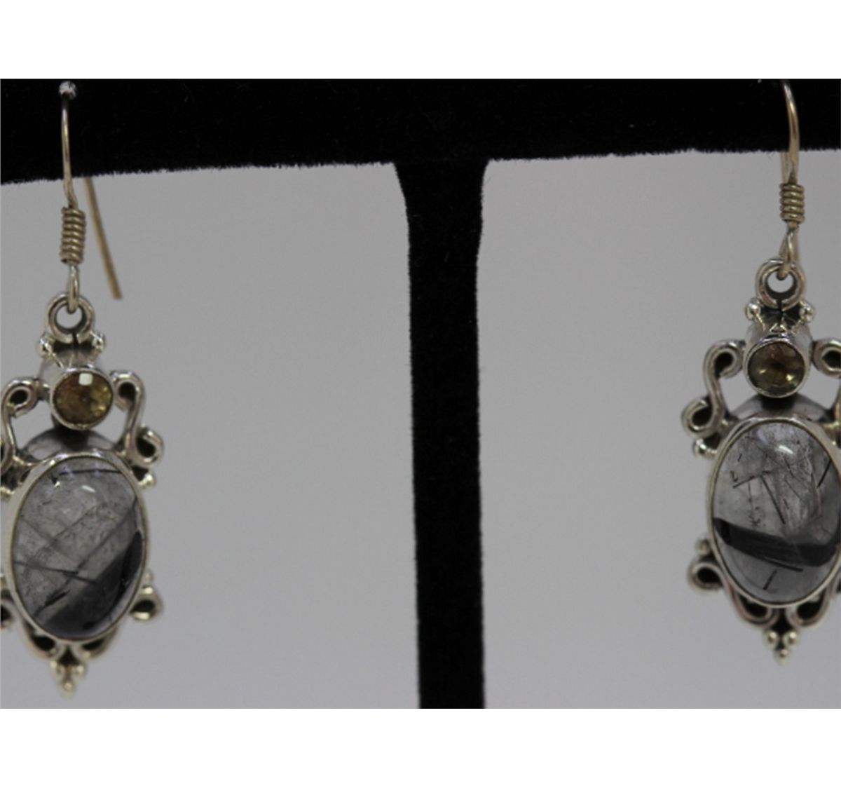 Sterling Silver9.62 Approx grams including, Big Oval Rudilated Quartz Hand Detailed Hook Earrings