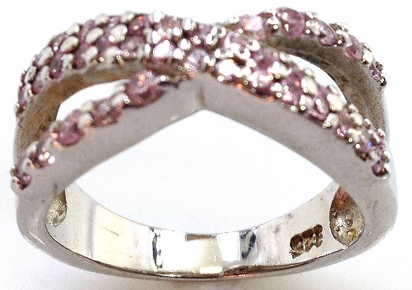 Sterling Silver X Style Ring w/ Pink Gem Stones, 5.13 approx grams including gems, size 8.5
