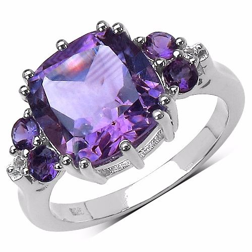 African Amethyst Cushion 10.00mm - 1Pc + African Amethyst Round 1.90mm - 4Pcs + White Topaz Round 1.30mm - 2Pcs
