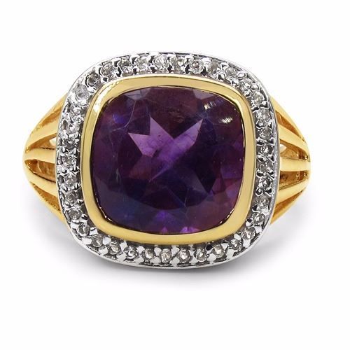 African Amethyst Cushion 10.00mm - 1Pc + White Topaz Round 1.00mm - 37Pcs ( White Pan Rhodium )