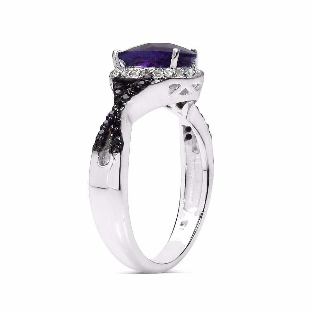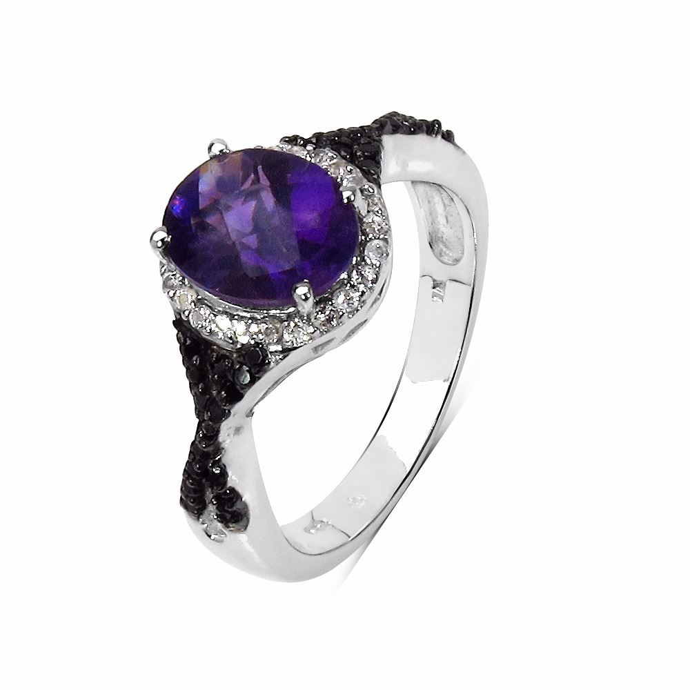 African Amethyst Checker Board Oval 9x7mm - 1Pc + Black Diamond S/C Round 1.00mm - 30Pcs + White Diamond S/C Round 1.00mm - 24Pcs ( With J Back ) ( Black Pan Rhodium )