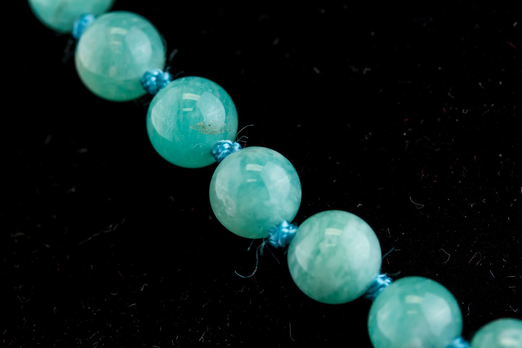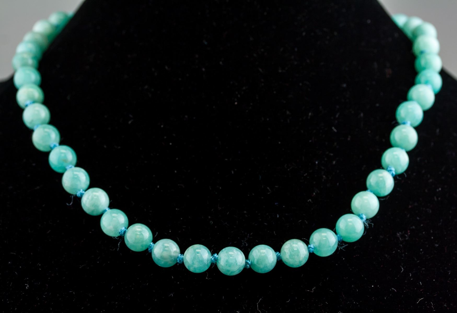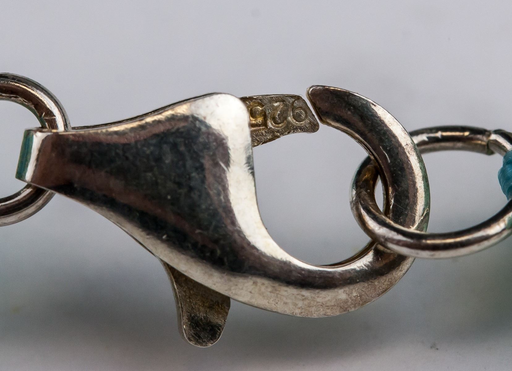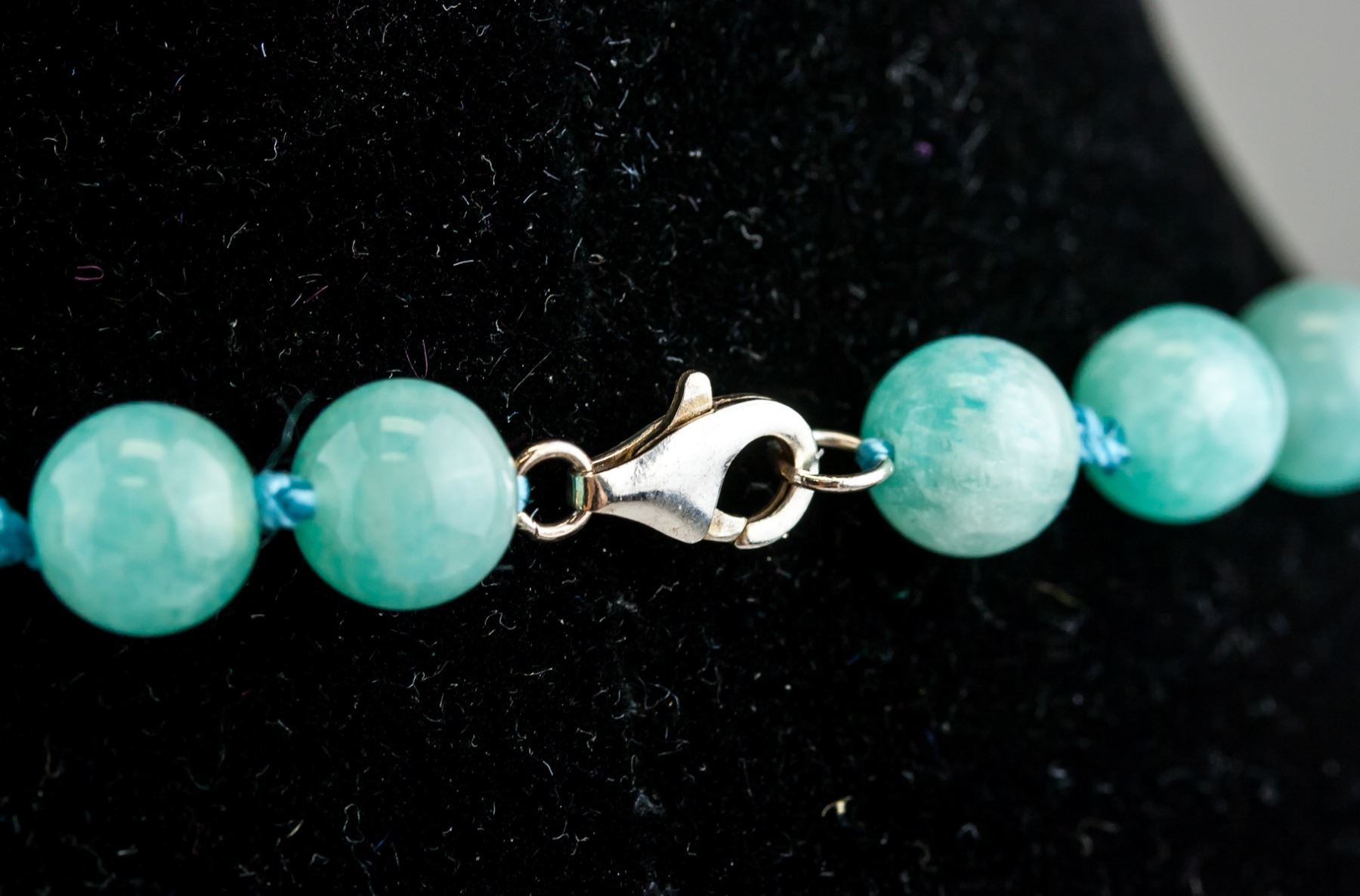 Stamped 925 silver clasp necklace. Set with round cut light blue amazonite. Retail Value $553.