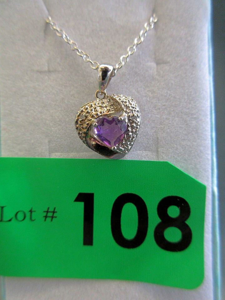 Heart cut amethyst. 2 Diamonds. Retail value $275.