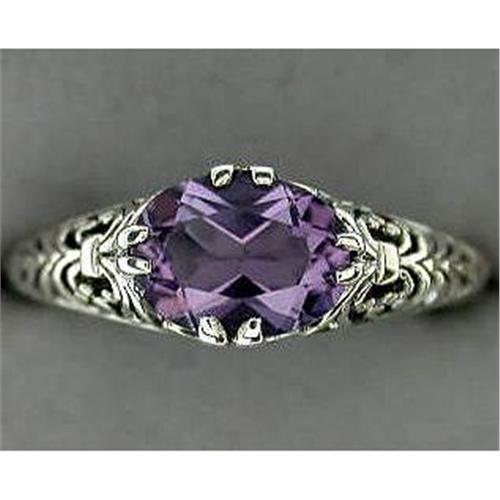 This Antique Style Amethyst ring from my collection is an Accurate & Authentic copy of a ring from the 1930's - and - THIS ring is in Mint condiion! Antique Style Sterling Silver ring featuring a Genuine Oval Amethyst = 2 Carats, with exquisite filigree work each side. This ring is now a size 8, and I can easily resize it for you.