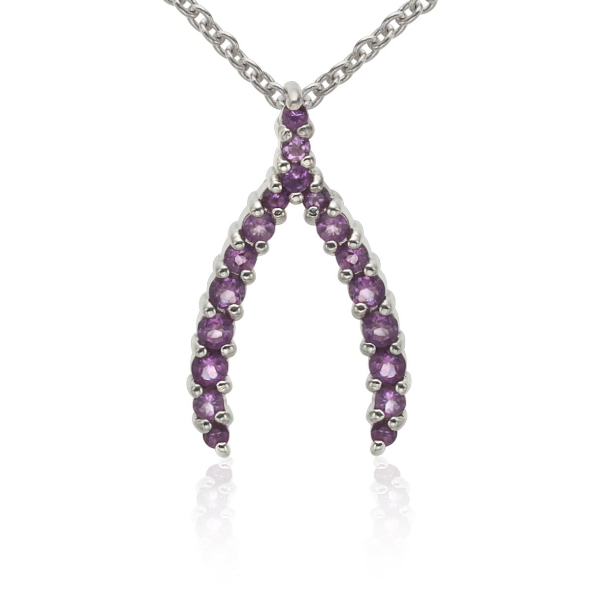 Make a wish! If it was for a striking pendant necklace, your wish just came true. Pangea Mines crafts a wishbone in gleaming rhodium on sterling silver and adorns it with genuine amethyst gemstones to create an intriguing design. A complementary 18 chain with convenient lobster claw clasp for added security completes the look.
