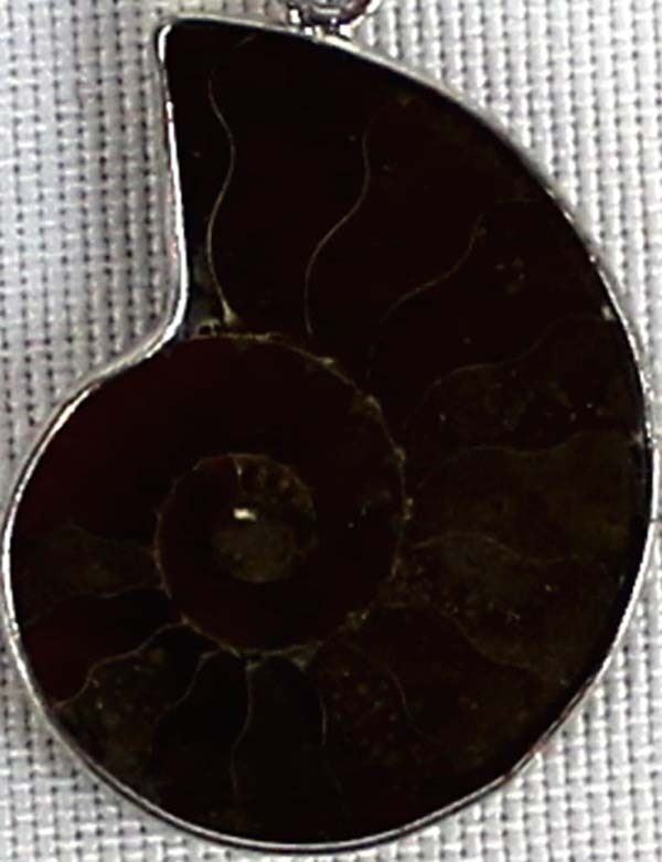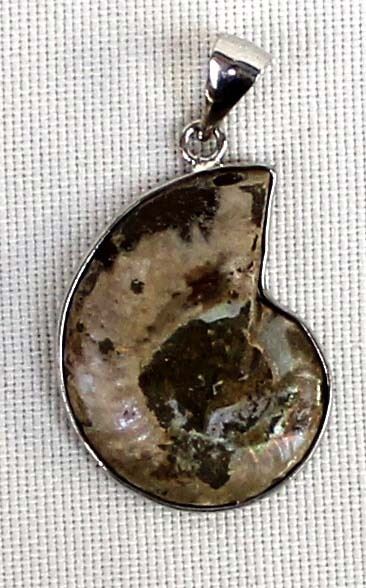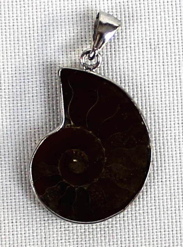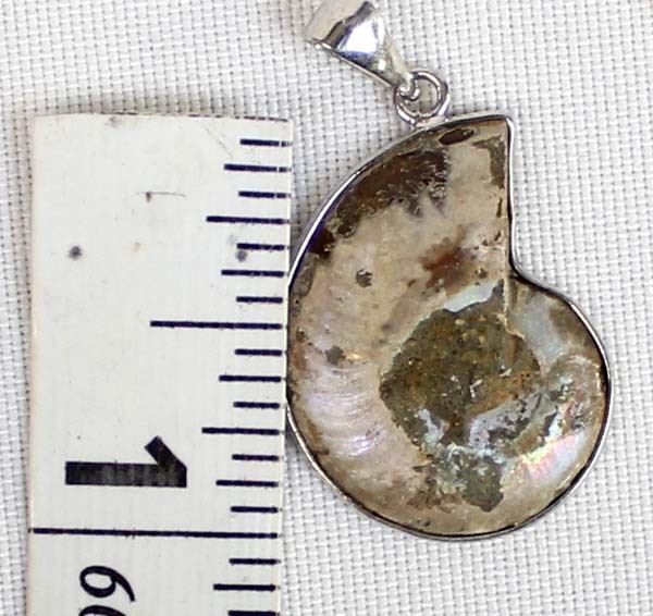 Sterling Silver Ammonite Fossil Pendant, measures 1.25''L x .75''W