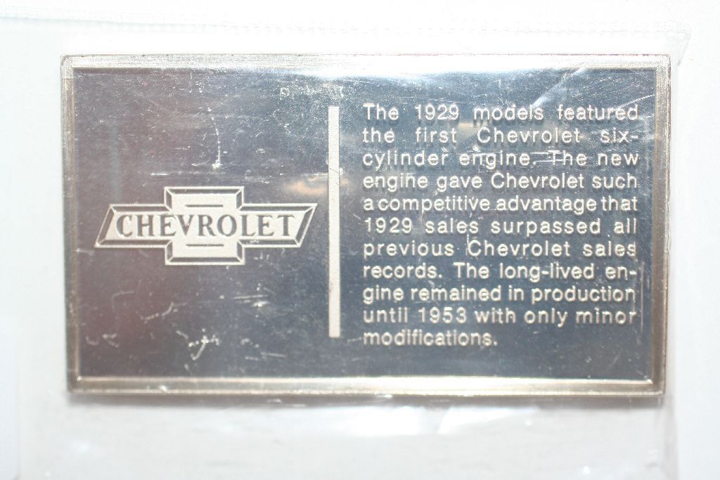 This lot is a franklin mint 1000 grains sterling silver automobile bar; 1929 chevrolet