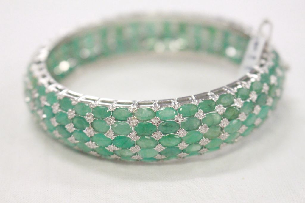 Sterling Silver Bangle Bracelet With 195 Genuine Emeralds (Appraised $2,150)