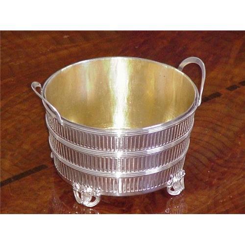 A lovely early 20th century sterling silver footed basket, 2 3/4" tall to top of handle, 3 7/8" in diameter, it has s removable silver plate liner with a gold wash interior. The basket is marked sterling on the underside. Condition is very good, it polishes beautifully.