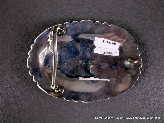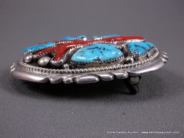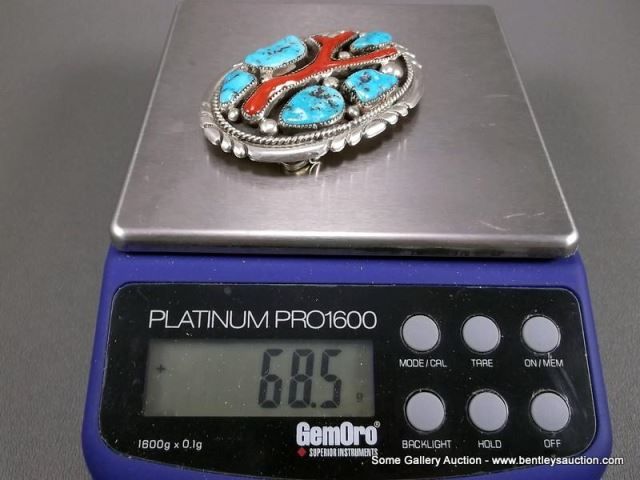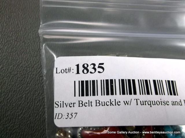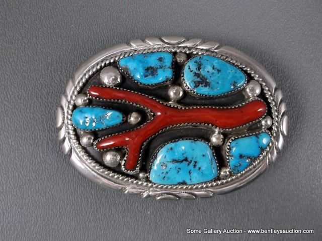 Sterling Silver Belt Buckle w/ Turquoise and Red Stone-Marked RLB Weight: 68.5 Grams Retail: $795.00